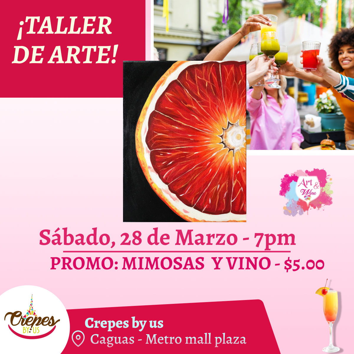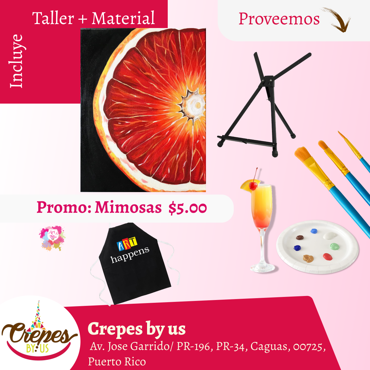 🎨¡Taller en Caguas! ✨Crepes by us ✨ Promo en mimosas 🍹 - 7pm- Sábado, 28 de Marzo 2026