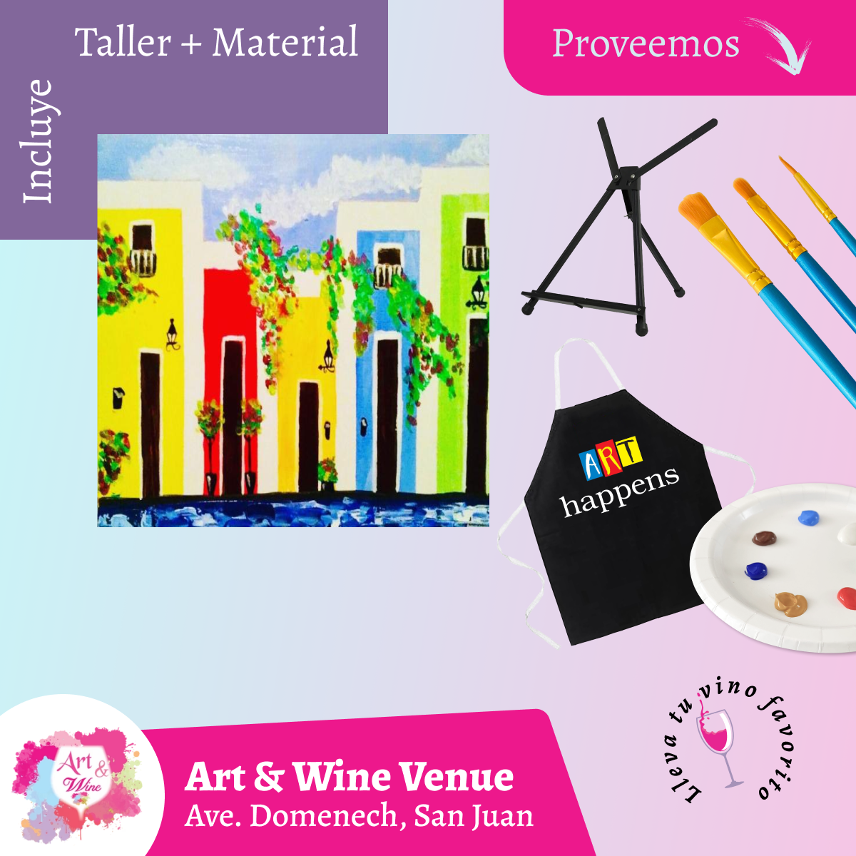 🎨¡Taller de arte en Art & Wine Venue 7pm - Miércoles, 15 de octubre en San Juan. ¡Lleva tu vino favorito!