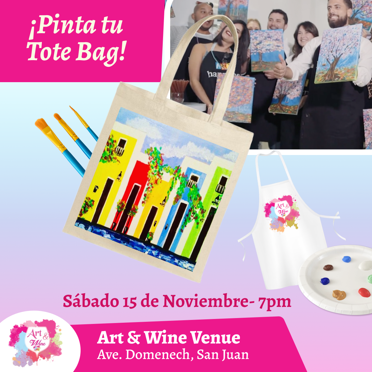🎨¡Pinta tu Tote Bag! ✨ Art & Wine Venue 7pm - Sábado, 15 de noviembre en San Juan. ¡Lleva tu vino favorito!