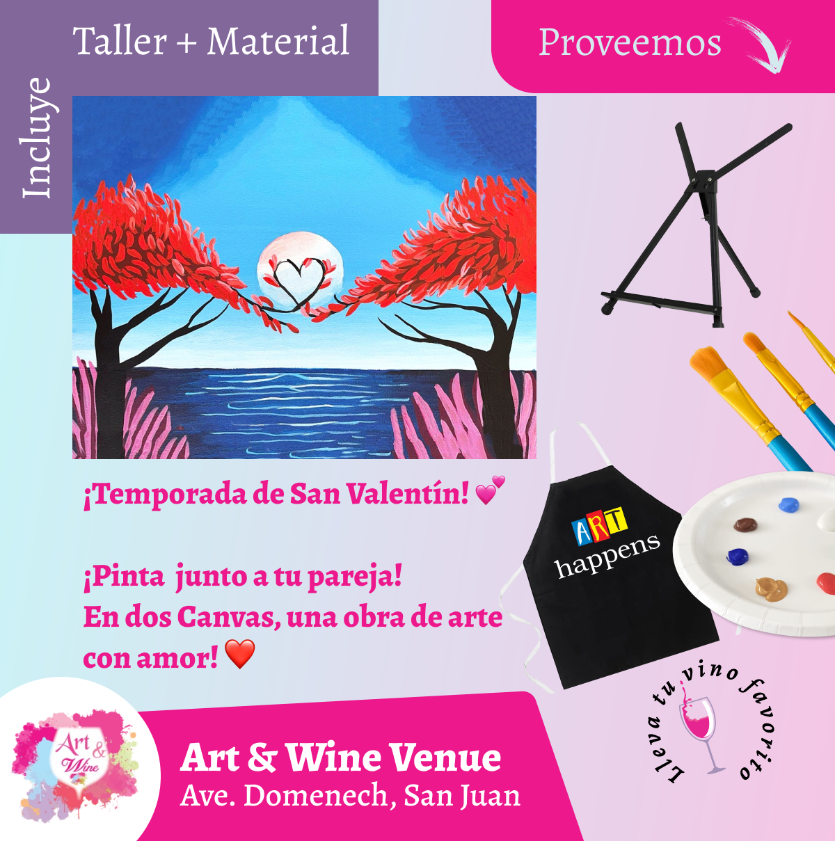 ❤️ San Valentín taller de arte! ❤️ Sábado, 14 de Febrero en Art & Wine Venue, en San Juan. ¡Lleva tu vino favorito! 7:00pm