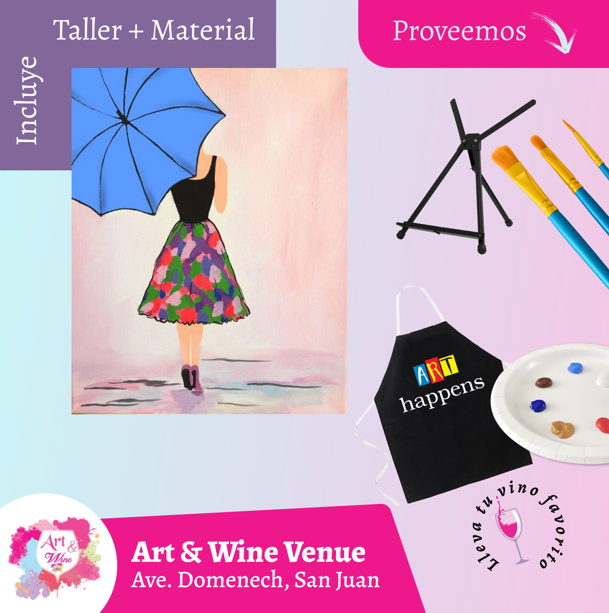 🎨¡Taller de arte en Art & Wine Venue 7pm - Miércoles, 25 de Febrero 2026 en San Juan. ¡Lleva tu vino favorito!