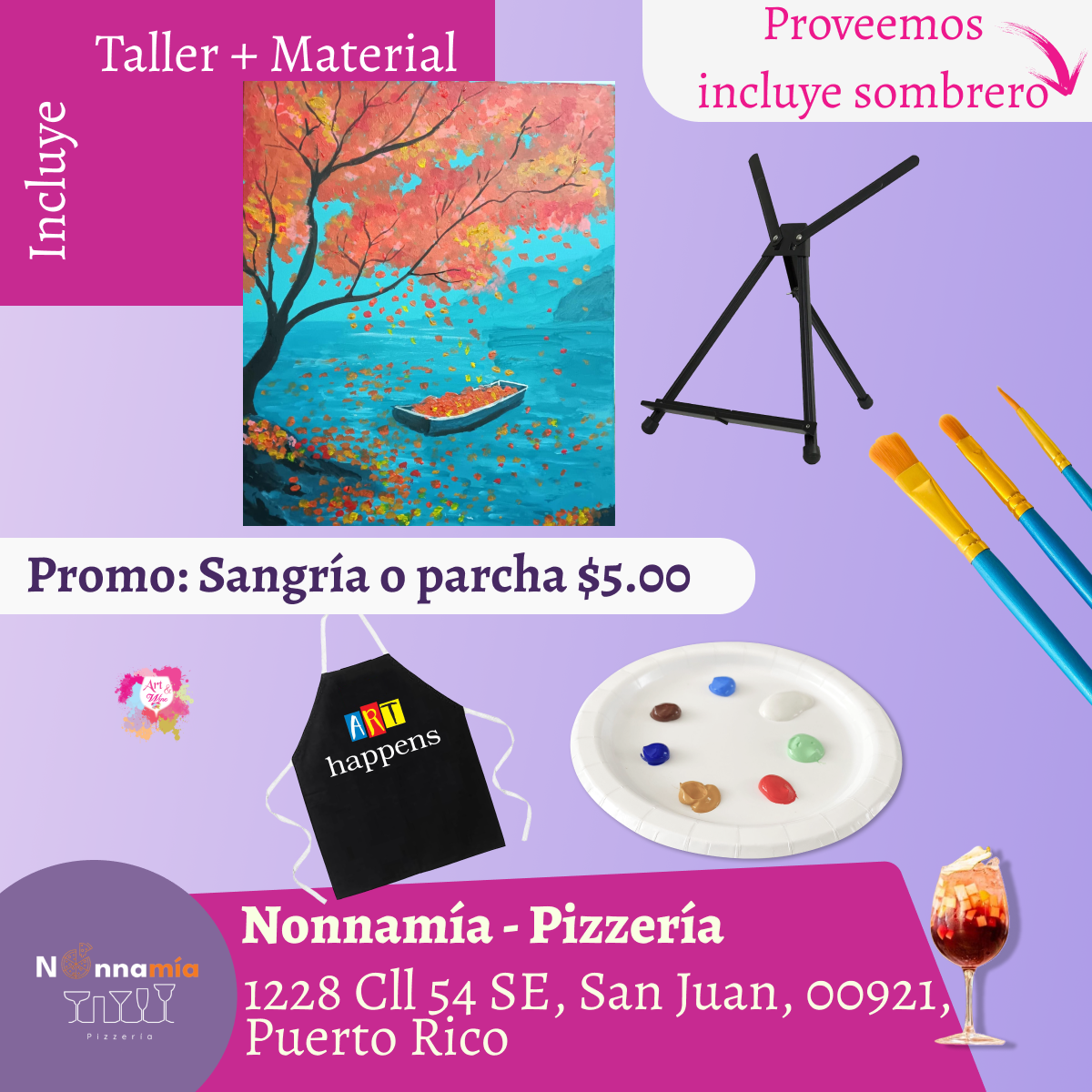 La compra de cada boleto incluye todos los materiales necesarios para realizar el arte ✨si lo desea, puede adquirir bebidas y alimentos en el restaurante ✨