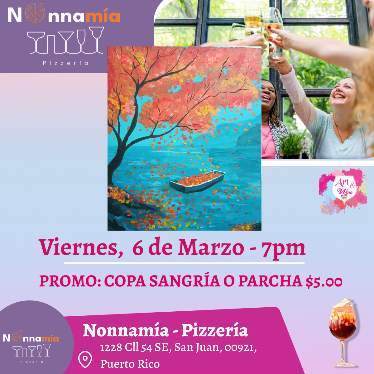 Durante el evento cada persona pintará una obra de arte guiado paso a paso por un artista profesional, mientras goza de buena música y mucha diversión.